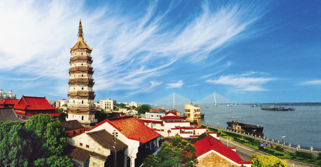 迎江寺,位于安徽省安庆市枞阳门外的长江边上,占地3万余平方米,由天王殿、大雄宝殿、振风塔、毗庐殿、藏经楼、大士阁、法堂、广嗣殿等建筑组成。明万历四十七年(1619),邑绅阮自华募资重修,殿宇华丽,气势恢宏,为沿江名刹。