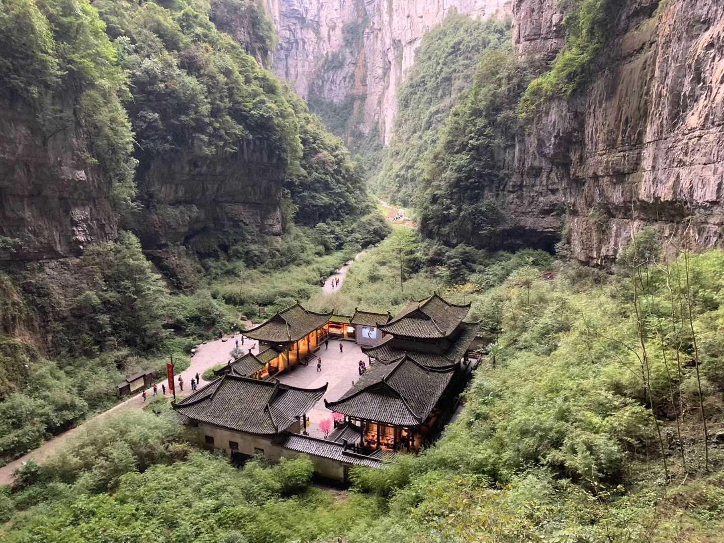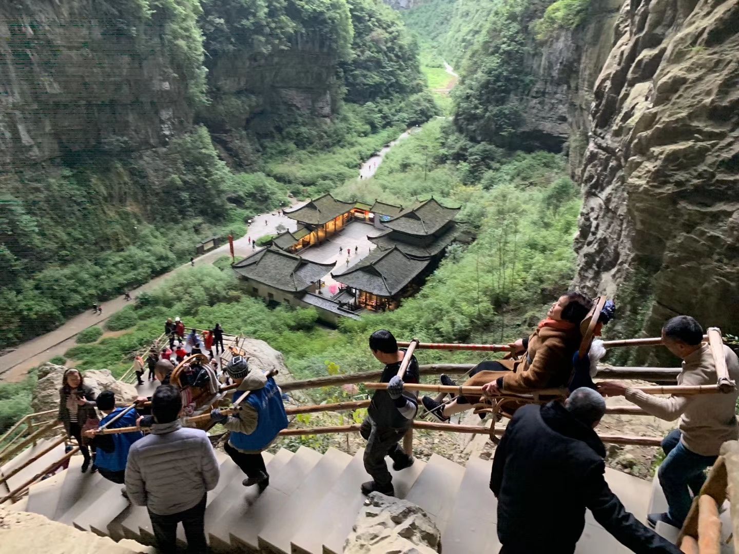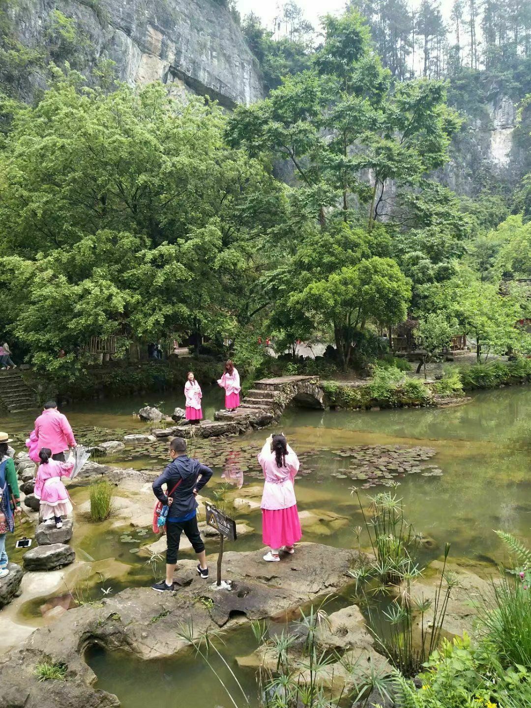 行走于天生三桥石阶上举目四望,群山相叠、藤绕古树、谷壁如削,仿佛置身于世外桃源之中。还有舍身崖、望峰石、绿茵塘、仙女洞等众多景点点缀其间,引人入胜,令人流连忘返。