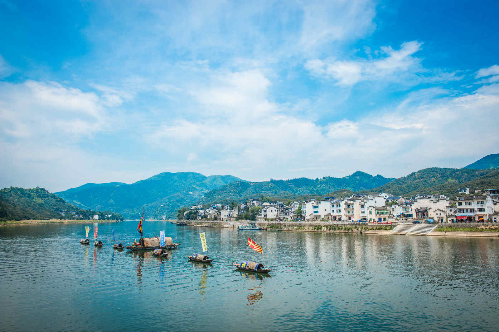 新安江山水画廊游览路线:深渡码头-九砂古村晒秋-绵潭新安渔风九姓捕鱼-漳潭徽州红妆馆-漳潭千年古樟;