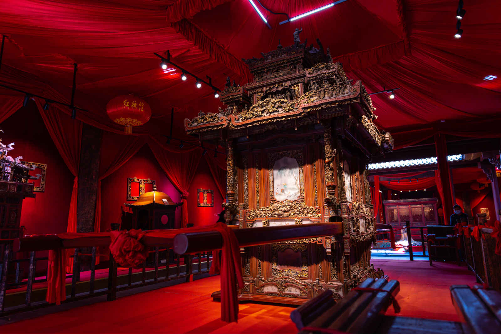 十里红妆,漳潭古村内的红妆馆则重现了古时徽州的“闺阁文化”,所谓“十里红妆”是旧时嫁女的场面。里面有琳琅满目的馆藏展品,大到床铺家具,小到针头线脑,从金银首饰、衣裳布匹、烛台灯火、床橱柜桌、枕箱被帐、冠巾鞋袜、铜盆器皿、瓷漆杯盘、梳洗用具到珠玉珍玩、文房四宝,凡新娘嫁到夫家的生活一辈子所需一应俱全