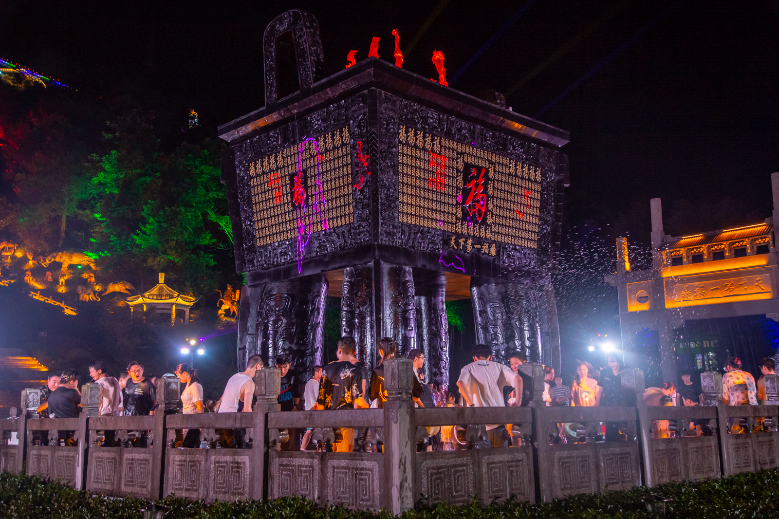 晚上还可以参加森林夜游奇妙夜,灯光闪烁,浪漫纷呈,千万盏明亮串成灯海,还有超嗨的泼水狂欢