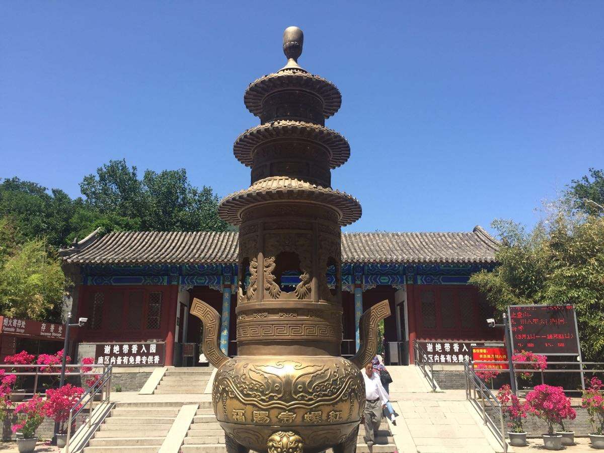 北京素有“先有潭柘寺,后有幽州城”的说法,除了常规寺院的诸多殿堂,这里还有“二宝”:宝锅和石鱼,宝锅是原来和尚们炒菜用的,石鱼则是类似于钟的击打可以发声的石器。这里香火非常旺,常有市区的人大老远来这里,可以买一炷香。还可以爬山也是蛮锻炼身体的。