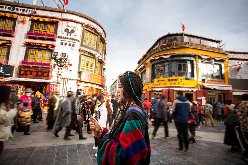 走在拉萨的大街上,看着熙熙攘攘的人群中,偶或出现一小撮的摄影人,对!那就是藏装街拍。