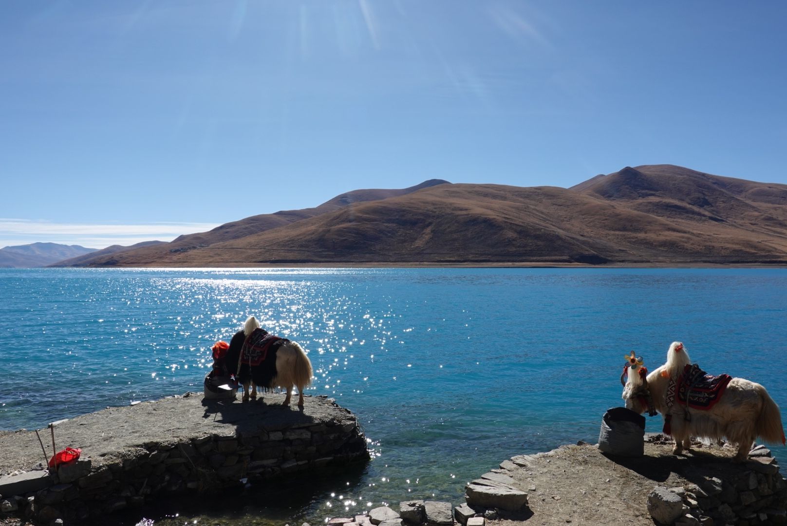 冬天的羊湖是冰蓝的,雪山开始白的赤裸裸,山坡呈现出褐色的本体。雪山与湖泊融为一体,颇为壮观。到了深冬,湖面开始结冰,除了在观景台俯瞰羊湖全貌和环湖漫步之外,羊湖便又多了一种玩法。你可以踩在结冰的湖面上尽情的滑行玩耍,享受这唯有冬季才会有的绝妙体验。
