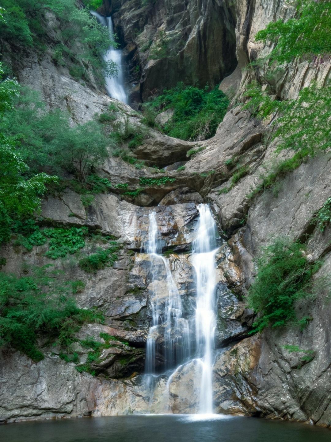 从健高尔夫球场-紫阁峪宝林寺遗址-敬德塔,从紫阁峪口过山野农家到马尾池瀑布后,再到连珠潭瀑布往返,全程25里左右,原路返回。