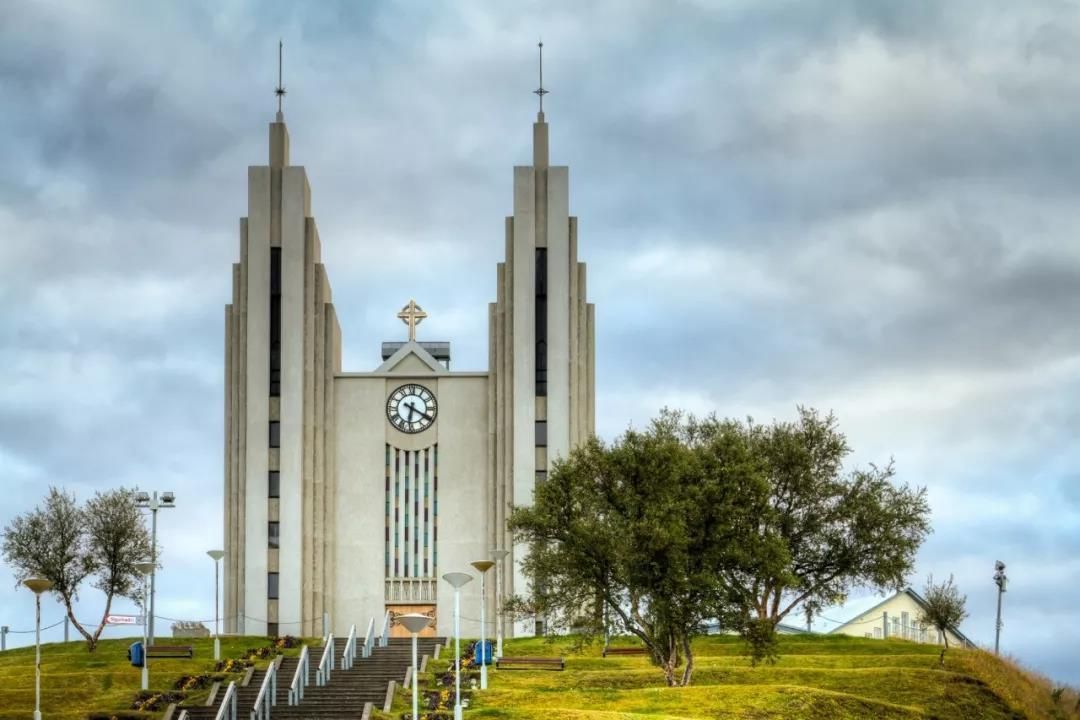 阿克雷里教堂是这个城市的地标,和雷克雅未克风格相似,也是在冬季纯美中一处现代派的建筑,造型夸张,像美国上世纪20年代的摩天大楼。阿克雷里教堂和哈尔格林姆斯大教堂的设计师是同一个人——格维兹永,阿克雷里教堂也有一架巨大的管风琴,有超过3000多根音管。不过,阿克雷里教堂最著名的是圣坛上方的彩色玻璃窗,从英国考文垂大学直接“借”到此处。