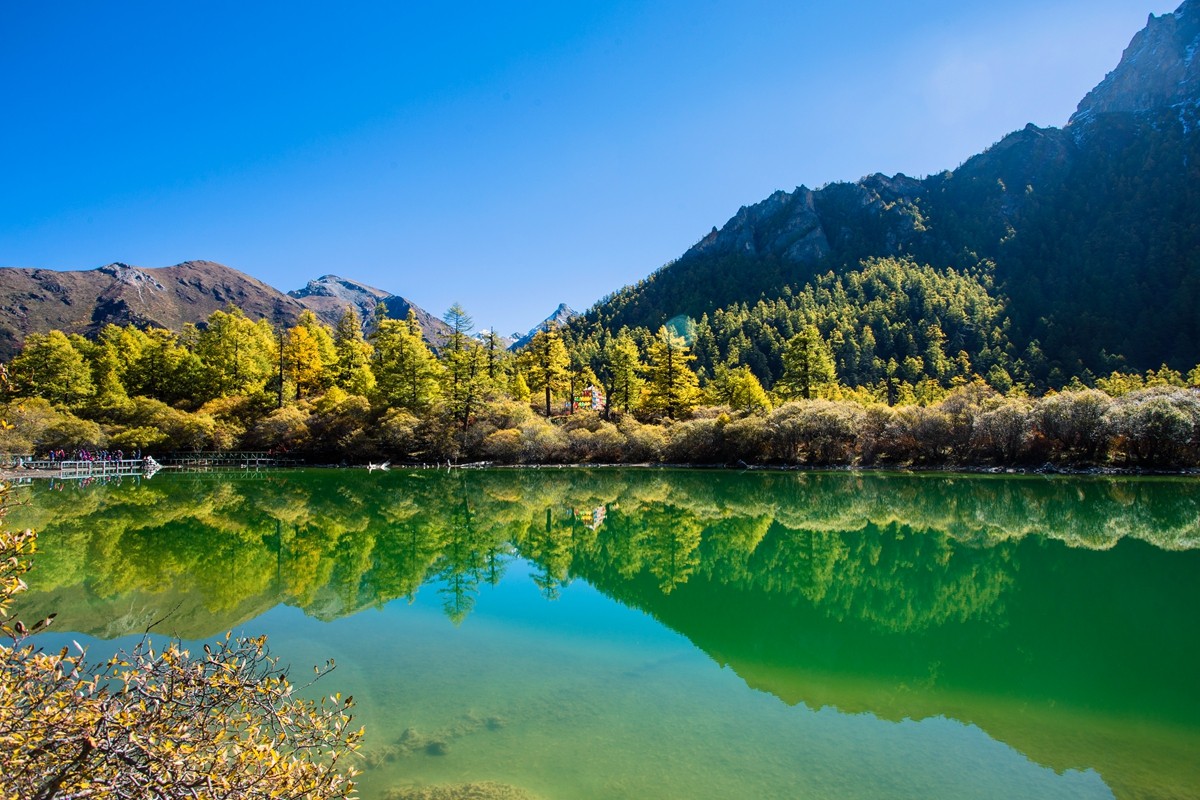湖水很深,呈现出美丽的蓝绿色,就如同镶嵌在群山之中的宝石。湖泊周围环境绿化非常好,山谷中不时的鸟鸣,让人感觉安静祥和。其景区内可垂钓、游泳、划船,还可以乘坐快艇。