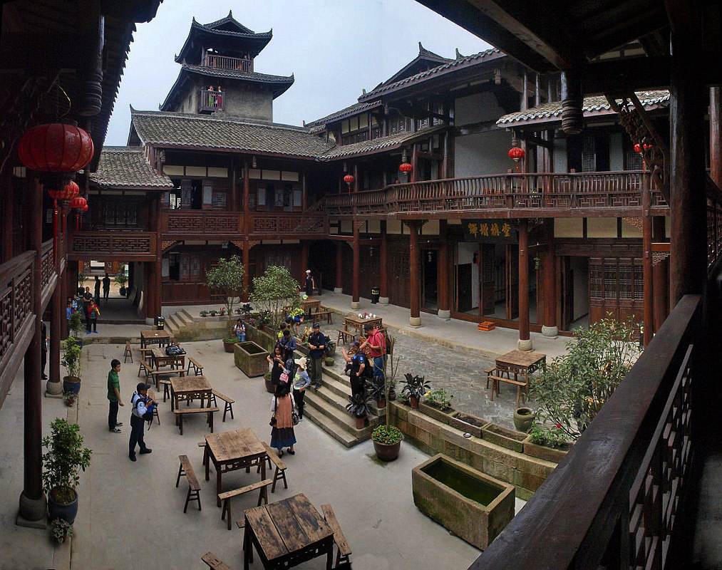 古镇槽上区域的山势甚为嵯峨险峻,成为进入境内的一道屏障,旧时建有不少山寨,今日可辨的古寨遗址有天平寨、共山寨、老鸦寨、铁瓦寨、关山寨、升平寨等。更引人入胜的是古镇上那斑斓的石板老街。古镇保存较完整的石板街有福寿街、十字街、半边街。古镇老街两侧均为2~3层全木质穿斗结构的店铺。铺后多为青砖黑瓦四合院,其檐额、堂额、门窗等,多饰以戏文故事、鱼虫鸟兽,具有典型的徽派风格,这一特点在重庆众多古镇中是不多见的。所以游览丰盛,一定要细细的走街串户,深入民居才会有收获,当地的老乡异常的好客,在游客随意参观拍照之时还会有茶水奉上,或者是拉游客进堂屋,坐下来慢慢聊述人情旧事。