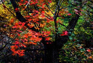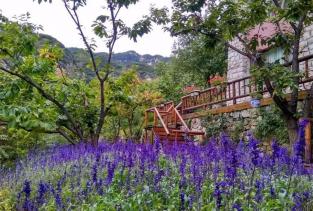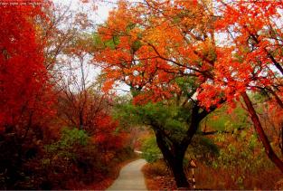 挂甲峪平谷挂甲峪山庄,有非洲枫树林,有挂满红灯笼的小木屋,春季桃花满山,夏季郁郁葱葱,秋季漫山彩叶林,景区内的盘山公路水泥铺就