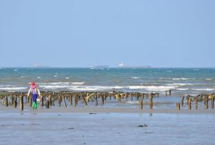 东山,蓝天白云下面一片神秘的海域,人们在贴近海面的沙滩上行走、奔跑、嬉戏,画面美轮美奂,风景绝美但却相当低调,趁着假期,驱车带领家人