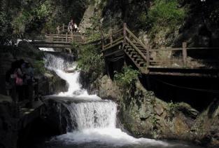 这个周末,我们自驾去了广东有名的盘龙峡游览。一、盘龙峡谷下午两点左右,我们来到了盘龙峡谷的半山腰,首先映入眼帘的是一座三四米