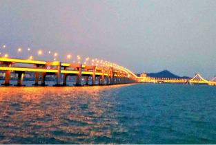 一.海上天桥从海岸到笔架山岛有一条长1620米的砂石路,人称“天桥”,把海岸和山岛连在一起,像一条蛟龙随着潮涨潮落而时隐时现,神奇绝妙