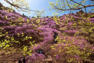 山泰赏桃花5月份赏桃花,山泰生态园种植了近1万多平方米的油桃,大棚里的油桃3月开花,露天的5月开花,相比赤山的樱花,山泰的桃花也别具风