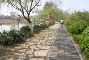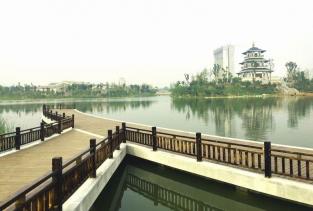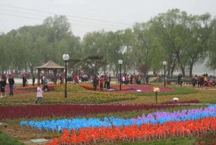 一.彩虹湖公园彩虹湖公园南北长约700米,东西宽约450米,总占地面积约465亩,充分利用雨水、中水资源,依托植物造景。园区内种植苗木近300种