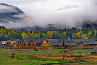 一.新疆禾木 新疆禾木,夕阳、错落有致的小木屋、周边山上金黄色白桦树,与小村子相映衬,夕阳下牛羊慢悠悠走在村子里的马路上,