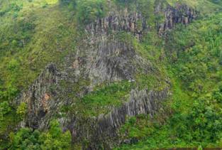 1、柱状节理在云南省腾冲县的龙川江畔,矗立着一大片火山爆发时喷出的未露于地表的岩浆冷凝后形成的柱状结晶,地质学上称为“柱状节理”,
