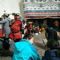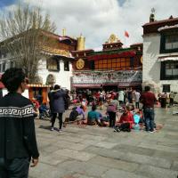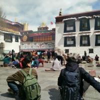 到了大昭寺给我极大的震撼。信仰真的能让人如此的虔诚,在大昭寺门前磕长头已经是当地人的生活习惯。门口排满了前去朝拜的人们,进去后,人多的只能排队随着人流往前走。一尊尊佛像面前都有很多信徒在虔诚的祷告。尤其是释迦摩尼等身像,每个人虔诚的用手抚摸