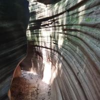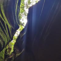 从延安租车出发去甘泉雨岔大峡谷,开了三个多小时,到达目的地时全是悬崖峭壁,小心驾驶哦。景点门口有租雨鞋的,一定要租,因为地下有积水会粘上好多泥,有的地方很窄,胖点的人过不去就可以返回了,有的峡谷比较长,有的就比较短很快回来。