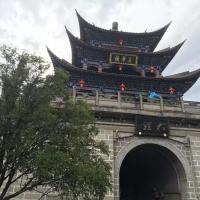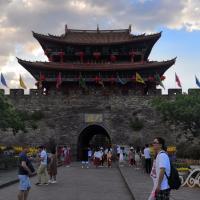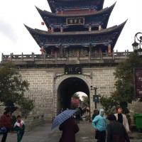 大理古城坐落在苍山洱海边,这里是个山清水秀的地方,古城墙保存完好,2000年时曾游览过城墙,这次本想故地重游,没想到城墙正在修缮,没能如愿。但是古城内的印象更深刻了,比原来热闹了许多,商业气息很浓,酒吧街更是灯红酒绿的,噪音震耳欲聋的,古城