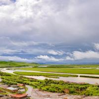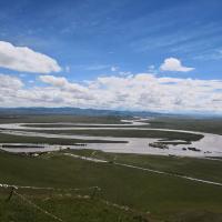 黄河九曲第一湾位于若尔盖县唐克乡,此处是四川、青海、甘肃三省交界处。黄河九曲第一弯地处草原腹心地带,白河于此汇入黄河,形成浩大气势。登上一座小山包,黄河九曲第一湾的美丽景象跃入眼底。索克藏寺背后的山坡是骑马登山观看第一湾的高点,骑马价格50元,来回大约1小时。