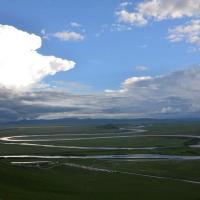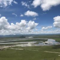 川西高原行之九曲黄河第一湾。天下黄河九十九道湾,最美就在第一湾。九曲黄河第一湾,位于若尔盖的塘克乡,这里黄河在草原上蜿蜒流过,形成一个大大的“S”,形成了壮美的景观。特别是登高往下看,黄河蜿蜒,草连水、水连天,苍苍茫茫,叹为观止;草原上骏马