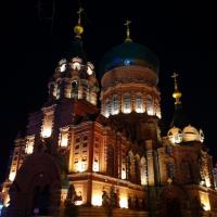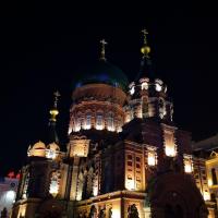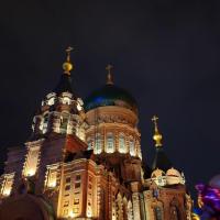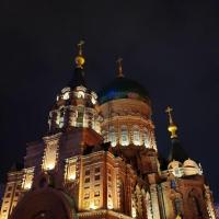 圣索菲亚教堂是俄式建筑的风格,在晚上的话会更加的漂亮,很喜欢这个教堂,不论是早上还是晚上,它都是那样的美丽,不过最近在维修好像要19年的12月才修好。