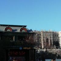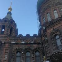 这个圣索菲亚教堂是属于他们应该叫东正教的这种教堂吧,俄罗斯人建的,上面能看到大大的十字架,我们去的时候有点不凑巧,正好赶上他们在维修。