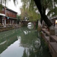 除夕下午到达周庄,从上海虹桥火车站坐高动十几分钟到达昆山南,再转公交车到周庄,因为是除夕,检票处工作人员12点下班,我们没有买票就进入省下一笔门票。