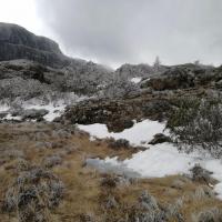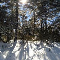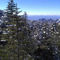 轿子雪山最高处自己松拓手表测得大概4200多,可以看到海拔不同的各种地貌。下面说一下注意事项:因为雪山嘛,当然是要冬天去爬了,昼夜温差相当大,早上起来车子表面都结冰了;一定要戴墨镜,如果近视眼也请配变色镜片,裸眼你是受不了的,女友没戴墨镜回
