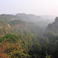 万佛山,丹霞地貌区位于湘、桂、黔三省区交界处的湖南怀化市通道侗族自治县万佛山镇太平岩村,距离县城双江20公里,包括7个景区,面积100.83平方公里。距县城20公里,海拔597.9米,是全国最大的丹霞峰林地貌之一,