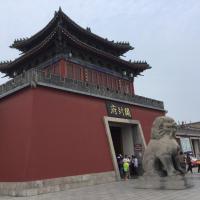 火车站坐双层的观光一号线到开封府。现场买票有点贵,最好网购。开封府在北宋时期的地位相当于今天的北京市政府,不过这个只能算一个大号的主题公园。完全没有历史,只能说尚可一观。运气好还能看见模仿当年的包拯审案,而被告多半都是陈世美。