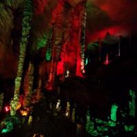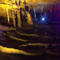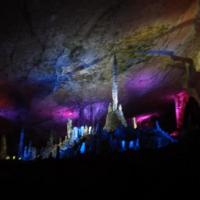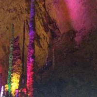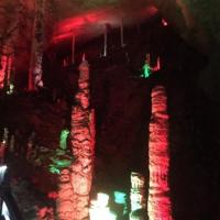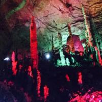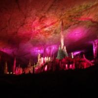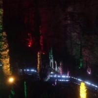 黄龙洞也是张家界一大奇观️️溶岩洞里自然形成的岩石岩柱千奇百怪️️有点吓人️️洞外30多度洞内16度️️是避暑的好地方️️洞内环绕着响水河有游船可以环游,灯光效果特别棒️游览的人很多,不然会怕怕️️