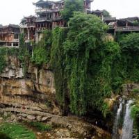 芙蓉镇——一个寻幽访古的最佳小镇,四周是青山绿水,镇区内是曲折幽深的大街小巷,临水依依的土家吊脚木楼以及青石板铺就的五里长街,处处透析着淳厚古朴的土家族民风民俗,让人留连忘返,住在景区里可以在房间里观望瀑布,随遇而安挻好真挺好。