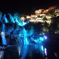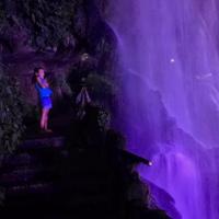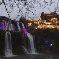 【湖南梦幻芙蓉镇】终于踏入湘西这片神奇的土地。土家阁楼层叠的悬于山间,在灯光的映衬下分外夺目;村下的瀑布散发出迷人的紫色,川流而下,水花四溅。入夜时分走进这个千年小镇,这里是芙蓉镇,美丽的让你舍不得眨一眨眼睛[微笑]