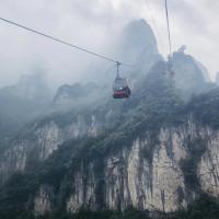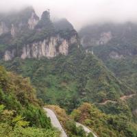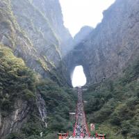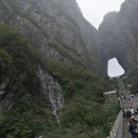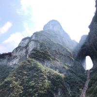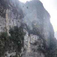 天门山景区索道很长,。天气原因山顶都是雾,看不清。玻璃栈道都看不出脚下的景,在天门洞的时候雾很浓,下到广场之后那边雾气散了终于能看到一点。去张家界真的一定要选个好天气。太受天气影响了