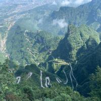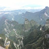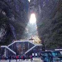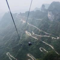 天门山离森林公园开车大概30分钟。天门山旁边也有旅馆还有吃的啥的,看路边的情况应该有很多的农家乐!天门山的门票是唯一一家不支持外国学生证的!网上买比较方便直接去电子取票不用排队。现场买票要排队而且还要走很远!我们选的是巴士上山,缆车下山。那