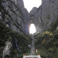 本来是想到天门山景区看风景,看大山。索道上山以后几乎能见度为0。除了眼前的路,什么都是白色。风很大,雾很大,很冷。但是也是不一样的景色。所有的景色都看不到。只能说我只是去过,并没有看到过。下山看天门洞,洞也看不到。全是雾。狂风。有点小失望,