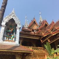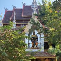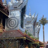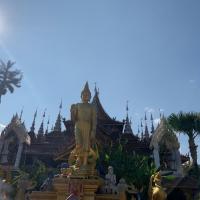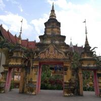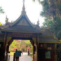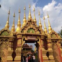 我们是走曼听公园公园里的一张小门到达总佛寺的,通过时会要验一下票。这里以前是傣王的皇家寺院,一直信奉的小乘佛教。建筑风格和东南亚那边非常相似,屋顶要么是金灿灿的,要么是银闪闪的,很是耀眼!屋顶四周还有很多神像,造像与我们内地寺庙也很不一样。