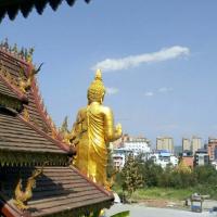 总佛寺里庄严肃穆,金碧辉煌的建筑在阳光照射下熠熠生辉。怀着虔诚的心,我们进入大殿。大殿是厚重的木地板铺上,干净、亮澄澄的,进入台上朝拜要拖鞋,尊重佛寺的规则,不得大声喧哗,毁坏寺庙的摆设。总佛寺建筑也比较大气、雄伟,一角一处都个不相同,雕刻