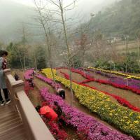 三月来丫山风景区游玩,景区分两个部分,不同地方不同入口,卧龙山和A哆乡村,门票也是分开两个部分分别游览。我们住在枫夜里,就在卧龙山脚下,A墩乡村对面。第一天下午逛卧龙山,坐观光车上山顶,车没有门窗的,很大风,一定要做好保暖。先逛玻璃栈道,全