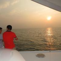 半山半岛帆船出海的景色很美,孩子玩得很开心喔,还钓上来了一条鱼,运气不错。整个过程船长讲解非常到位,船上有饮料等,还让孩子们掌舵,总的来说非常好玩,下次有机会还会再来!