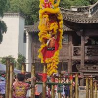 南山竹海整个景区还是非常大的,上上下下还确实需要搭乘里头的景区交通。要去看那个熊猫馆的话就得坐地轨。就是熊猫现在实在有点脏脏的,拍出来的照片啊不好看。整个景区的风景还是不错的,现在虽然冷,特别登上顶看,还有一座祈福钟,挺有意思。那个舞狮表演