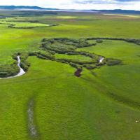 乌拉盖,湛蓝的天,白色的云,绿绿的色,还有那些起伏的山丘连绵到蓝天云里,我多少次憧憬向往的景象,终于就这样呈现在眼前,似梦如幻。面对眼前的美景,已经大约能看到九曲湾的魅力了,但心里还是想抓住这一刻,不想错过,当天的风有些大,放无人机航拍有些