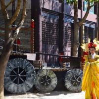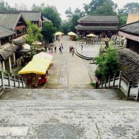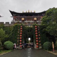 天龙八部影视城去的路较难走,马粪较多,建议搭乘小蹦蹦。摔碗酒,有兴趣可以体验一把豪侠饮酒摔碗的意气风发。城墙的话,大门那面上面可以敲钟击鼓,拍照也还可以。,面积不是很大,有些庙宇。有影楼可以换装化妆约拍。正巧当时赶上漫展表演加小有名气的乐队