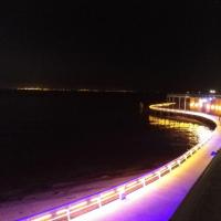 北戴河景区是一个很不错的地方,停车场很大停车方便,而且淡季去几乎没人没车,门票也很便宜,不过路边的小店也都关了。虽然海边很冷但是很美,值得推。晚上在北戴河街上散步,走到鲁迅公园旁,有一个非常漂亮的水幕灯光墙吸引着我,水幕墙很宽大,色彩斑斓的