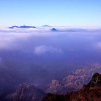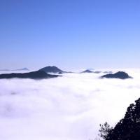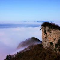 我安然地静立于光雾山风景区,放眼远眺,画面瞬间安静下来,眼波在脚下的流云里泛舟,虚无缥缈、若隐若现的米仓山彩林渐渐浮出云层。阳光更加炽烈,给绵柔的云海套上了一件金缕衣;天色,更加通透,纯净的蔚蓝快要从天体流