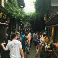 磁器口古镇保留了不少历史原貌,但是现在商业气息比较浓,满满的卖土特产品的,几乎都成商业小吃一条街了,走到古镇江口可以坐在茶馆喝喝茶。也是每个来重庆的游客必来的景点了。
