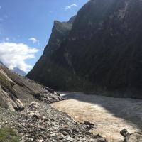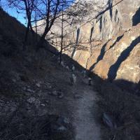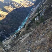 去虎跳峡的时候要自己步行半个多小时以上,一路看看各种比较惊险的路段,非常有乐趣,很多石头都是从山上掉下来的,到了住景区之后,由于水量不是很大,也没有特别的壮观。不过一路上感觉还是挺不错的。