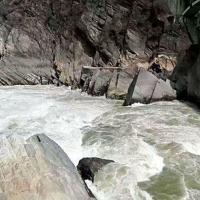 虎跳峡石头是从山上掉下来的一块巨石,正好在河道中间,由于这里河水比较急喘,所以说营造了一种虎跳的感觉。到景区里边需要步行进去,大约走40分钟,沿途的景色是很美,但是也非常的惊险刺激。