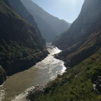 从丽江出来走214国道,要不了多久就到达虎跳峡针。从这里再到观景台还有十余公里的山路,不过很远你就能听见江水的咆哮声。据说虎跳峡是世界上海拔落差最大的峡谷,而金沙江在这一段被玉龙和哈巴两座雪山挤压地非常窄,所以才会有如此壮观的场面。
